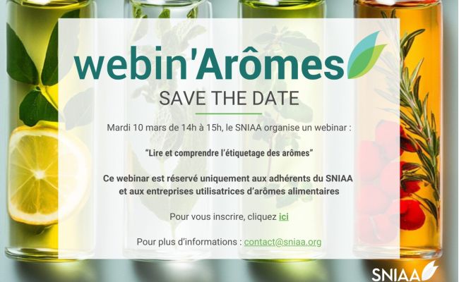 Le SNIAA organise le mardi 10 mars de 14h à 15h un webinar dédié à : « Lire et comprendre l’étiquetage des arômes »